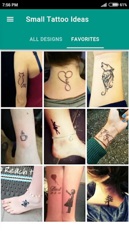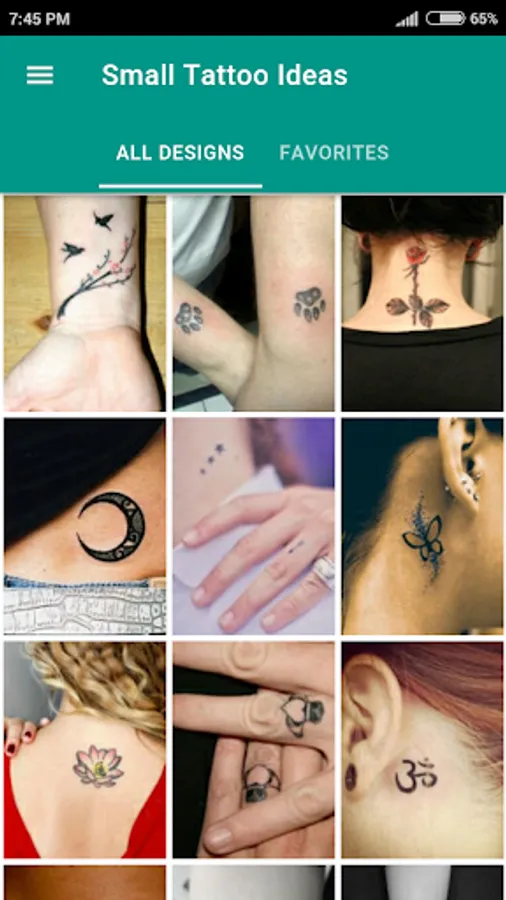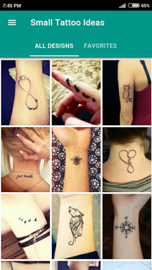 Latest simple, beautiful and small tattoo ideas. More than 150 small tattoo ideas are included in this app. Favorite tattoo designs can be chosen and shared through various social networks. All tattoos are small in size and simple and easy to apply on different parts of the body.