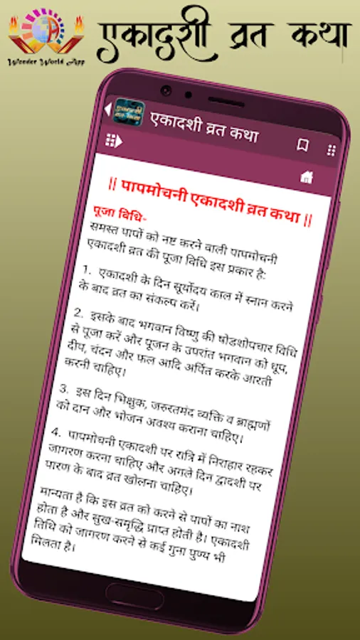 इस एप्प में सम्पूर्ण एकादशी व्रत कथा एवं भगवान श्री हरि का मंत्र, स्तोत्रम इत्यादि है|