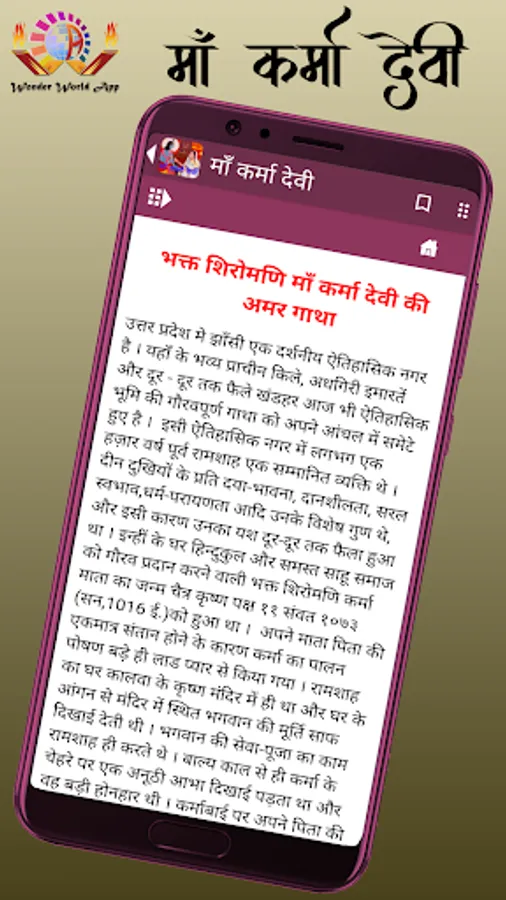 इस ऐप में भक्त शिरोमणि माँ कर्मा देवी की अमर गाथा एवं आरती है|