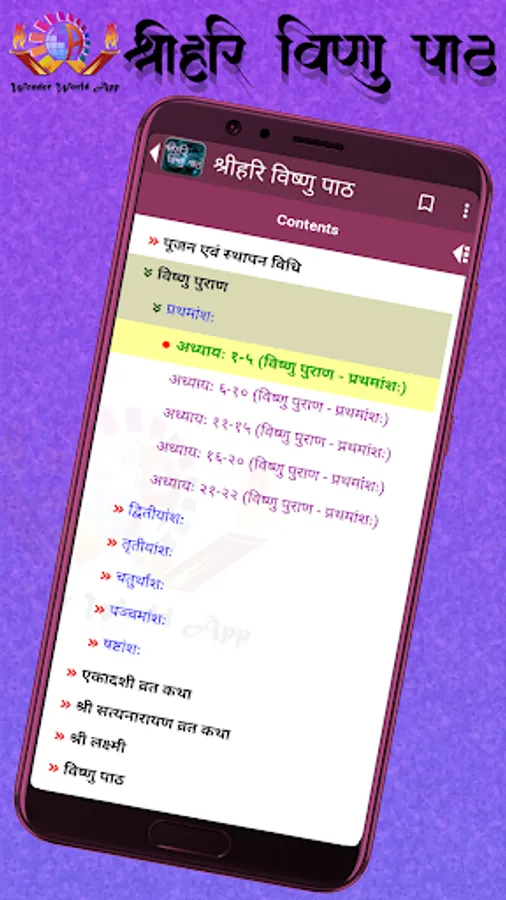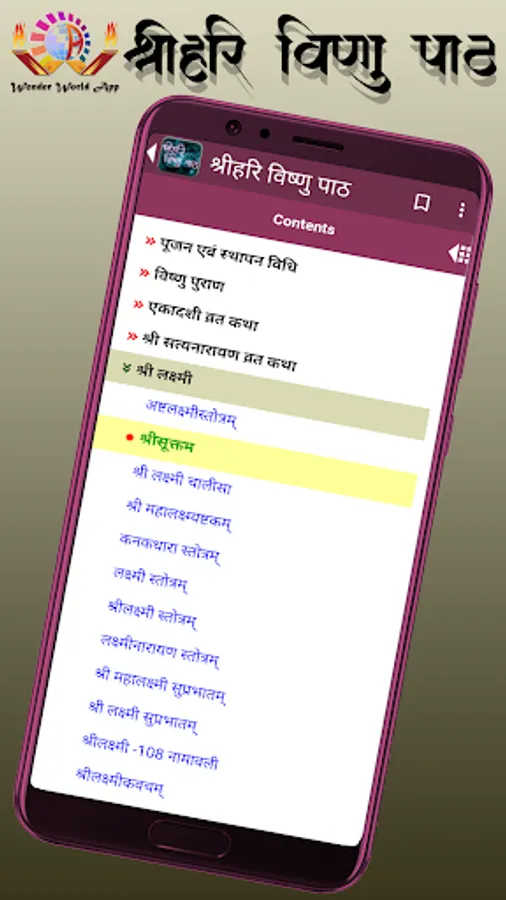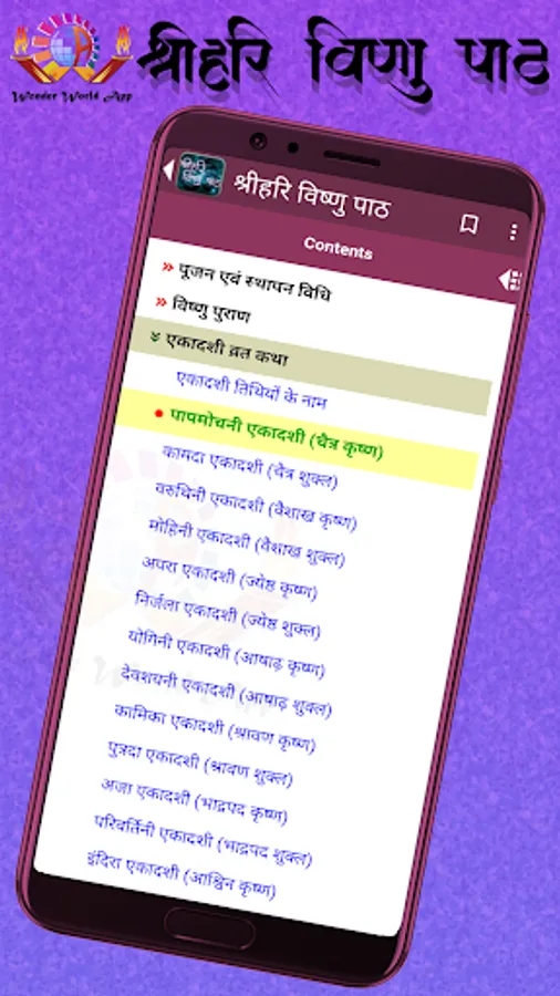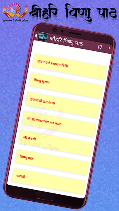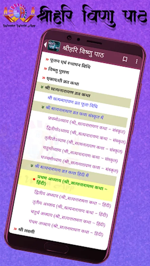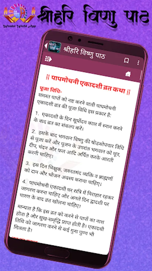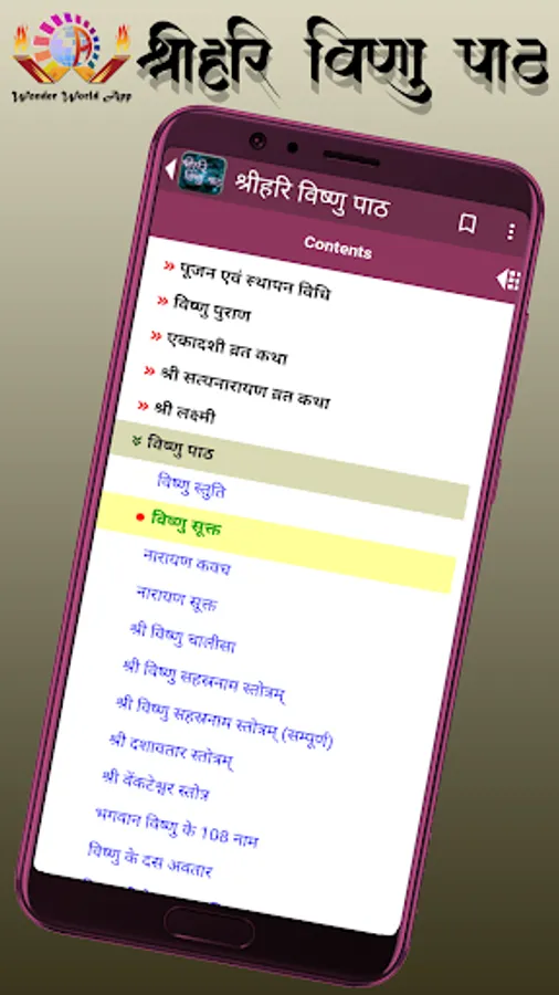 इस एप्प में भगवान श्री हरि से जुड़े हुए कथा, मंत्र एवं स्तोत्रम है- जैसे कि सत्यनारायण व्रत कथा, एकादशी व्रत कथा, विष्णु पुराण, विष्णु स्तोत्रम्, विष्णु कवचम, बीज मंत्र, नारायण स्तोत्र, विष्णु स्तुति इत्यादि है