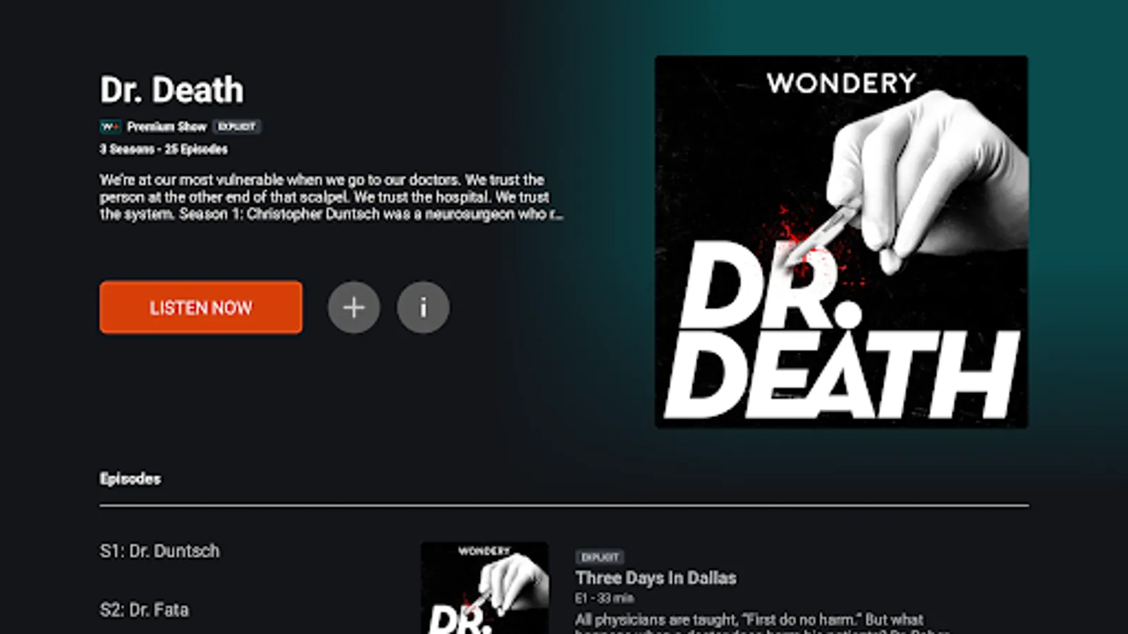 Wondery boasts a catalog of over 1,000 free podcasts (offering more than your typical podcast audio-player, with many genres to choose from) ready for listening. Find podcasts ranging from Sports, Comedy and Family-Friendly to True Crime podcasts for all crime junkies, along with episodes from series like: