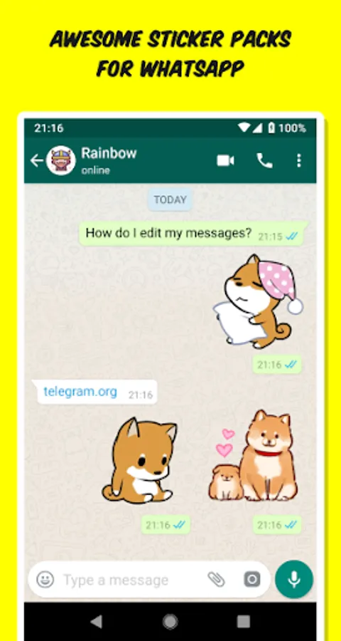 Note: The Telegram stickers in this app are published with permission from Telegram, obtained at stickers@telegram.org