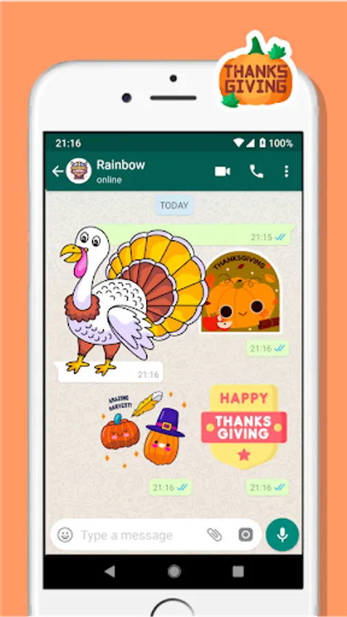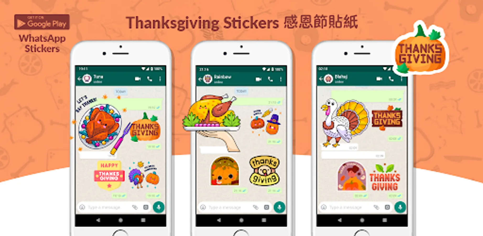 Here's the latest Thanksgiving Stickers 2022 app for WhatsApp. Feel free to download and install all these beautiful Thanksgiving(感恩节)stickers for WhatsApp and use them in chats with your family, friends and love ones!