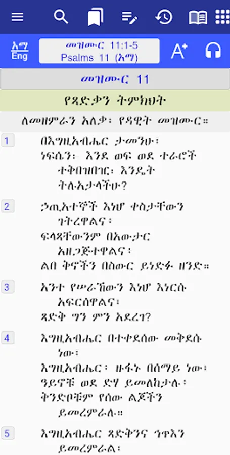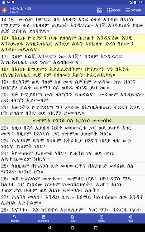 * Amharic, Geez, KJV, SEV, Tigrigna Bibles with On-demand Amharic Audio (download a book, once and listen offline)