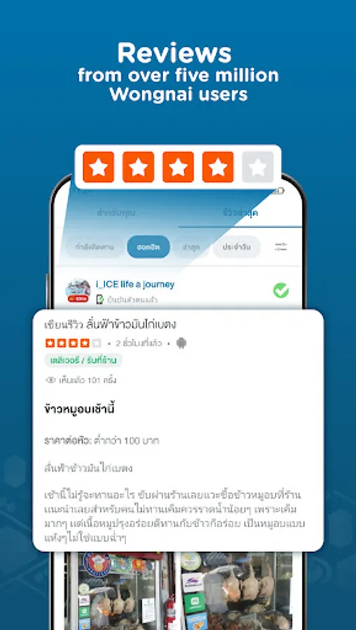 With the Wongnai app, you can easily discover restaurants, attractions, beauty services, deals and discounts, and order food delivery. Download now!