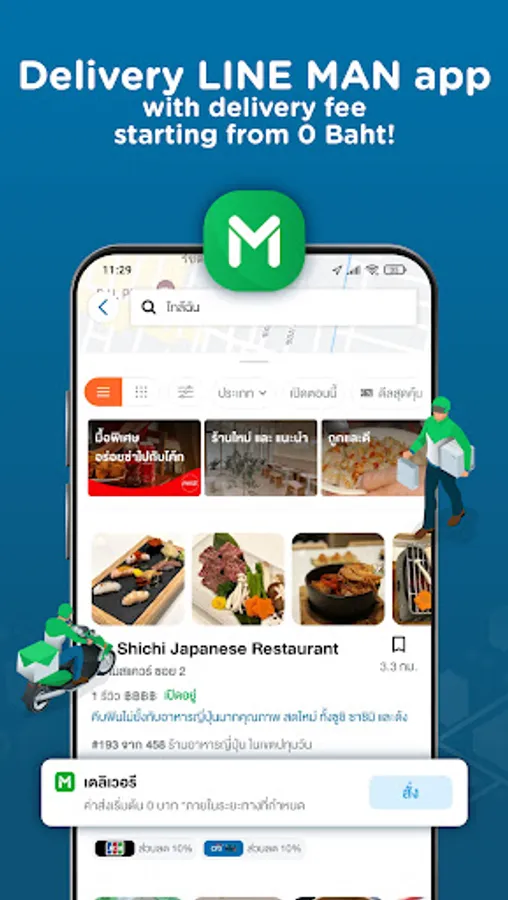【Order Delivery】— Ordering food through the LINE MAN application, more than 700,000 restaurants from around Thailand are available. Don't forget to collect our discount codes for your next time ordering!
