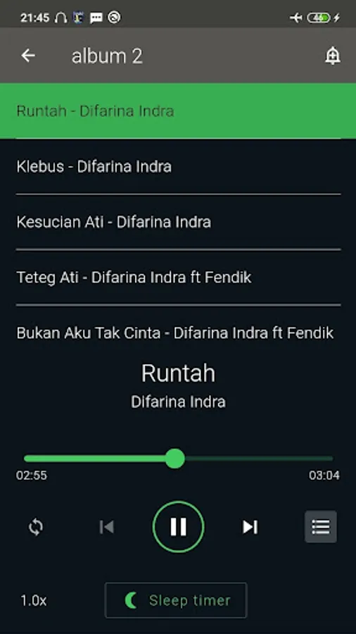This Difarina Indra Runtah Mp3 application is a dangdut koplo mp3 song player application for Difarina Indra's songs, which we present to lovers of the latest dangdut koplo songs. Dangdut koplo songs Difarina Indra Runtah, Teteg Ati, Klebus, Not I Don't Love, Joko Tingkir, Kesucian Ati, Tanjung Mas Ninggal Promise, Tiara is currently very popular in all circles, especially the connoisseurs of mp3 dangdut koplo Om Adella, DC Music who wants once had the most complete collection of dangdut koplo applications for DC Music, Om Adella and Difarina Indra. We dedicate this application exclusively to DC Music dangdut koplo mp3 lovers, Om Adella who is having trouble finding the most complete collection of Om Adella dangdut koplo songs, DC Music.