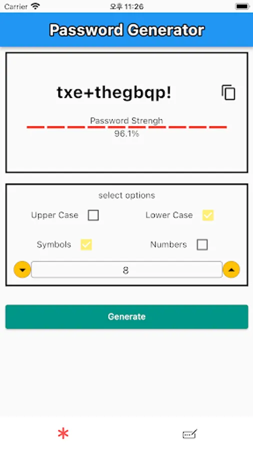 Password Generator is an app for generating strong passwords. Options are given to choose. It is super fast and easy, just check options and tap a button.