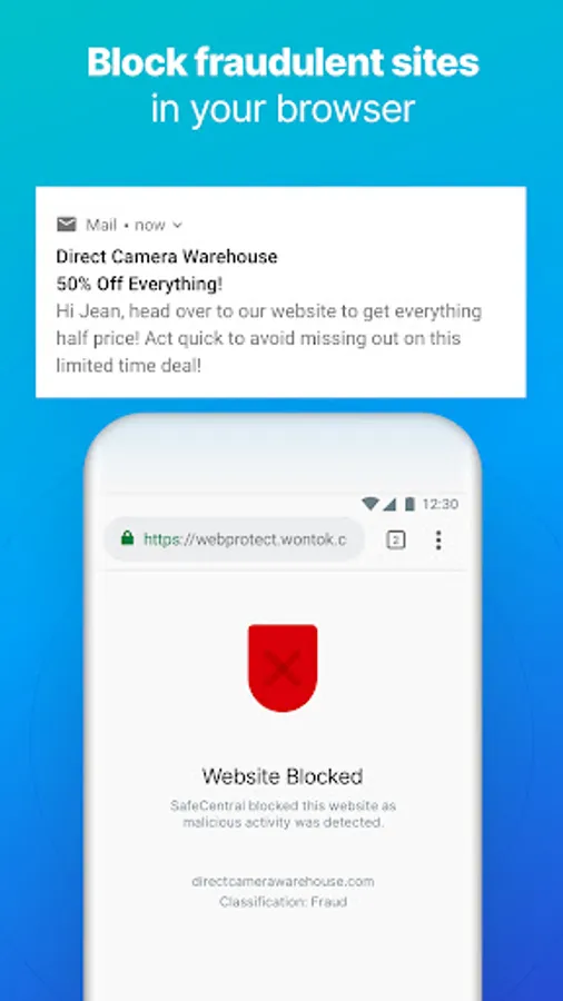 Compatible with all major Android browsers, SafeCentral for AOL protects you while browsing the web.