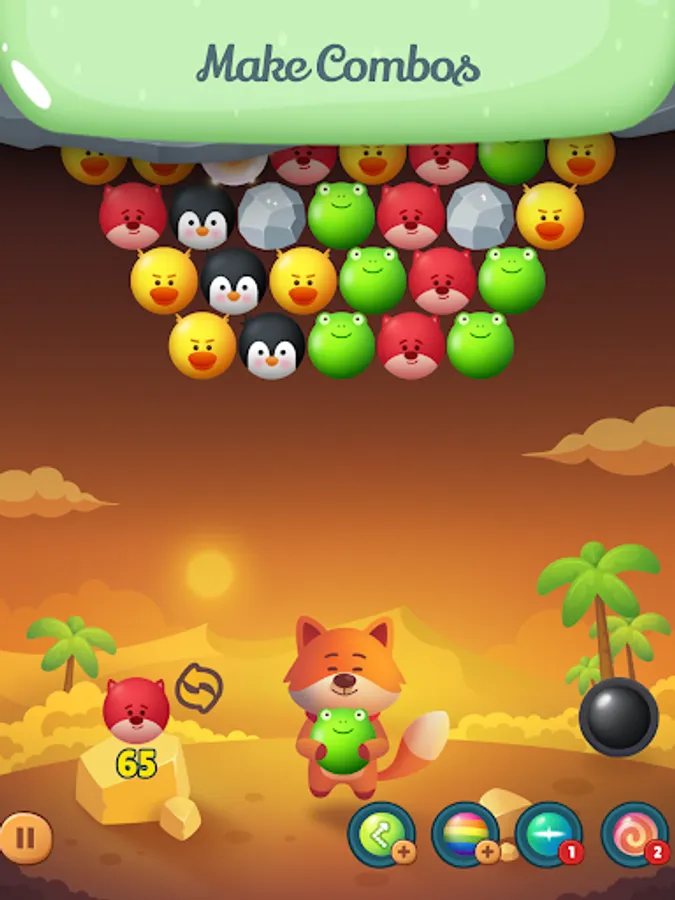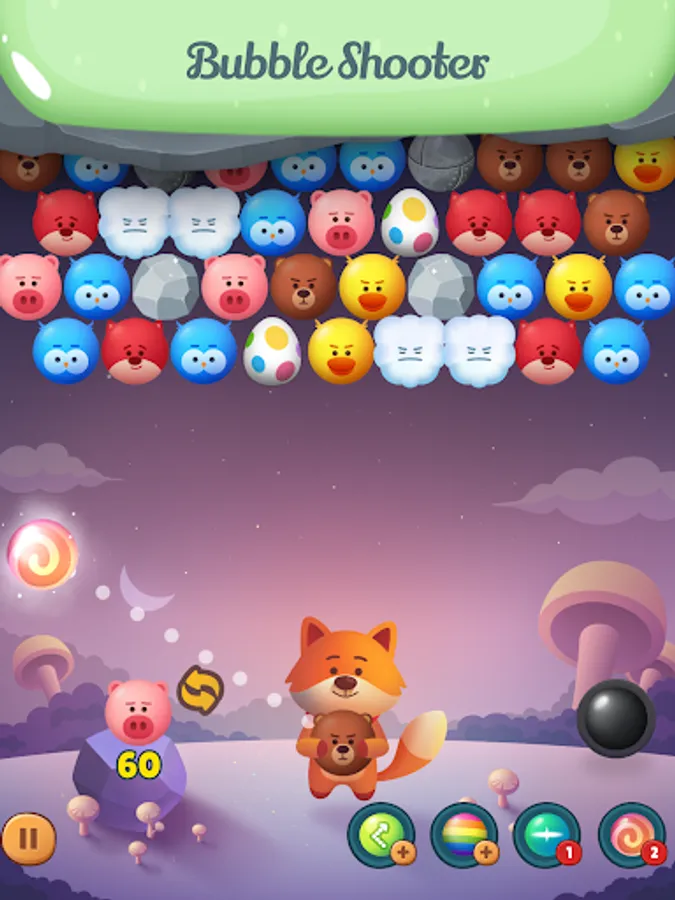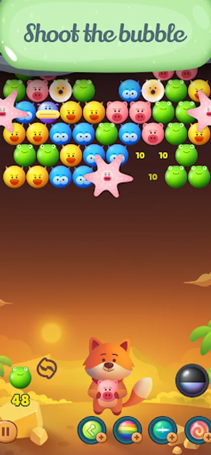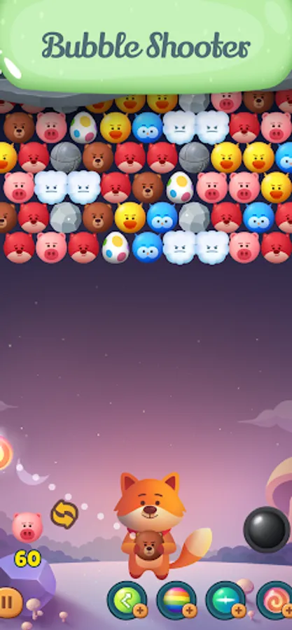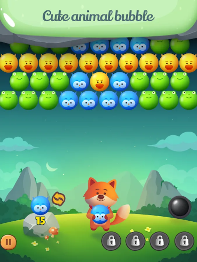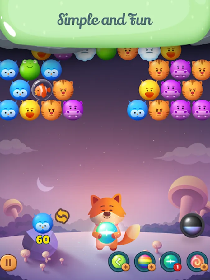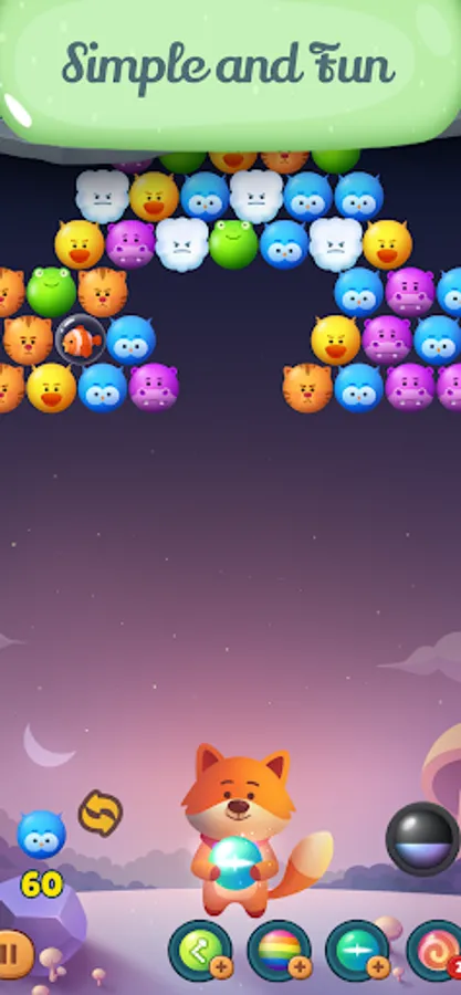 Embark on an enchanting journey with the classic and addictive bubble pop game, tailored uniquely in a charming animal bubble style! This is not just a game, it's a fun and relaxing journey that is designed to delight you at every step. Aim, shoot, and match 3 bubbles of the same type to clear levels.