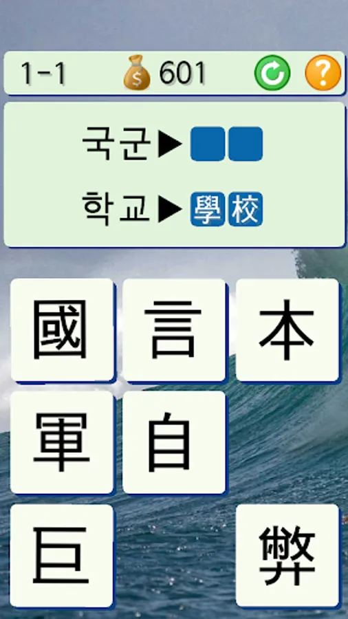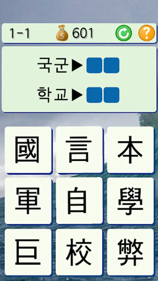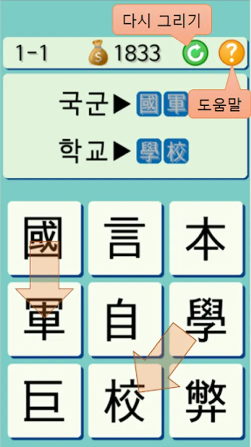 - The game of finding the Chinese or hanjaeum specified while moving in the horizontal and vertical diagonal.