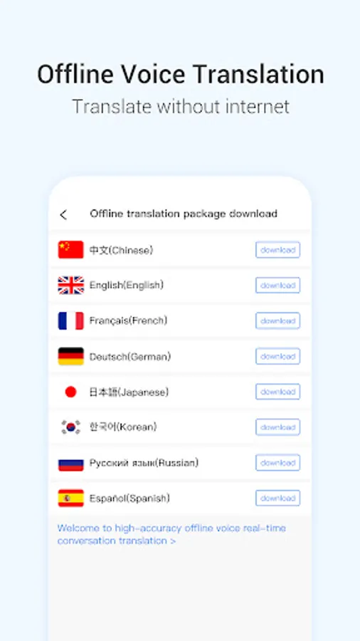 Supports high-precision real-time offline voice translation in 8 languages including Chinese, English, Japanese, Korean, Russian, German, French, and Spanish. You can translate even without internet, with high translation accuracy and fast translation speed.