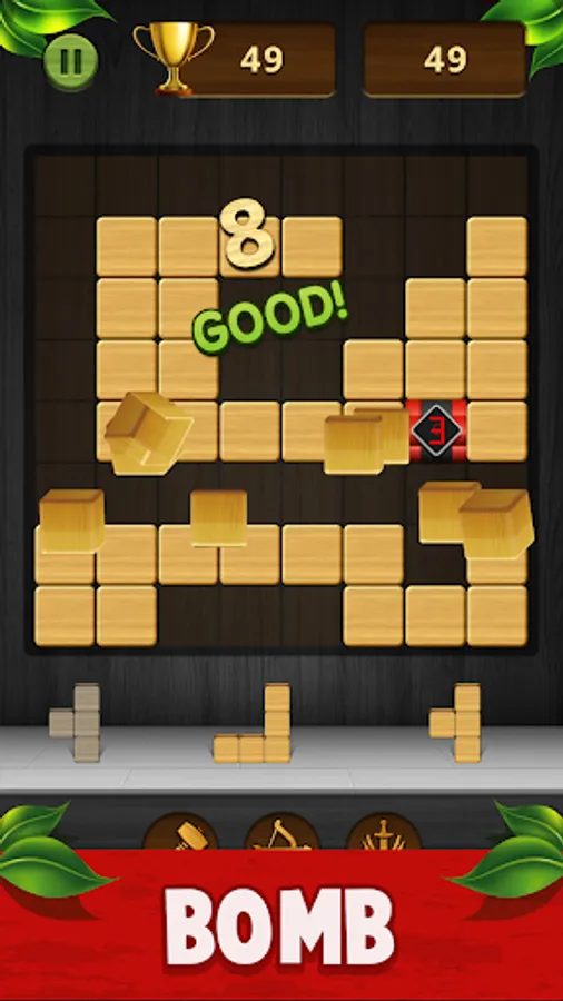 Crush the wood blocks and beat your own score. Nice to train your brain and pass funny times challenging puzzle game for free yourself and other player.