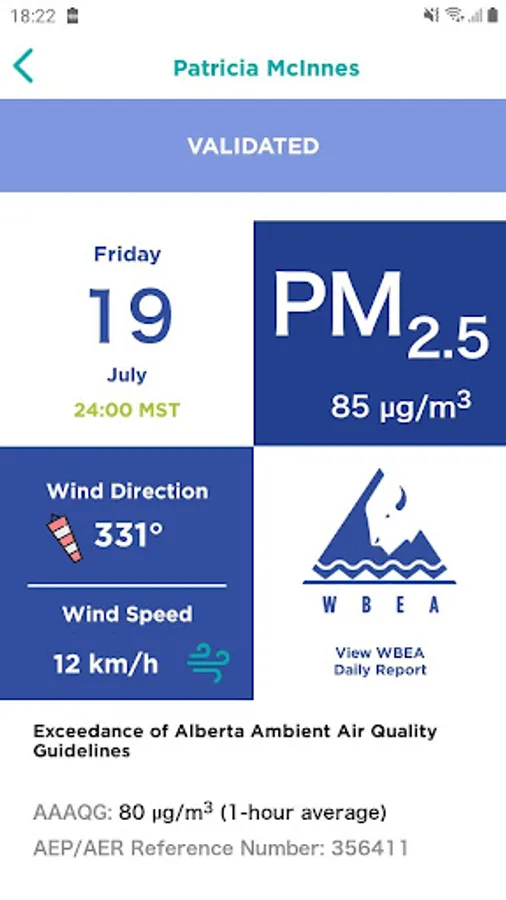 The Wood Buffalo Environmental Association (WBEA) monitors air quality in the Regional Municipality of Wood Buffalo. The Air Quality Events (AQE) app provides users with notifications of air quality events that occur at WBEA air monitoring stations throughout the region. Users can choose what events and what stations to subscribe to and receive information about air quality events and links to WBEA data in near real-time.