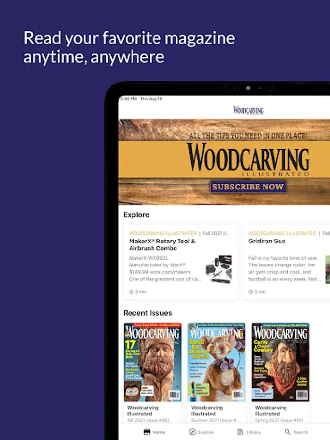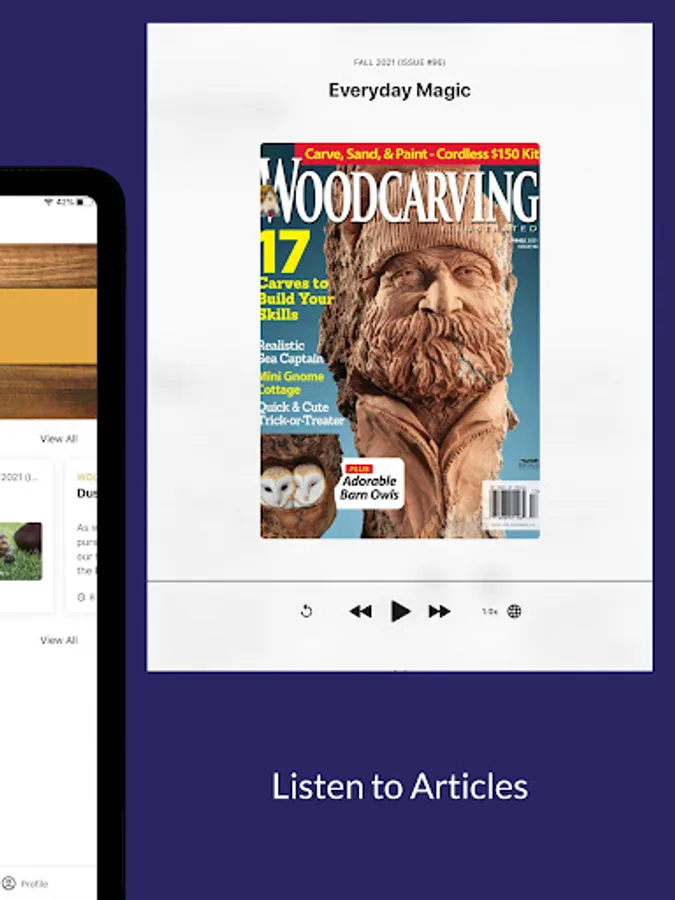 Woodcarving Illustrated magazine is your go-to guide for the latest and greatest carving projects, tips, and techniques for all skill levels. Each issue includes a wide range of detailed step-by-step projects, inspiring feature articles, and reviews of the newest and most useful tools on the market.