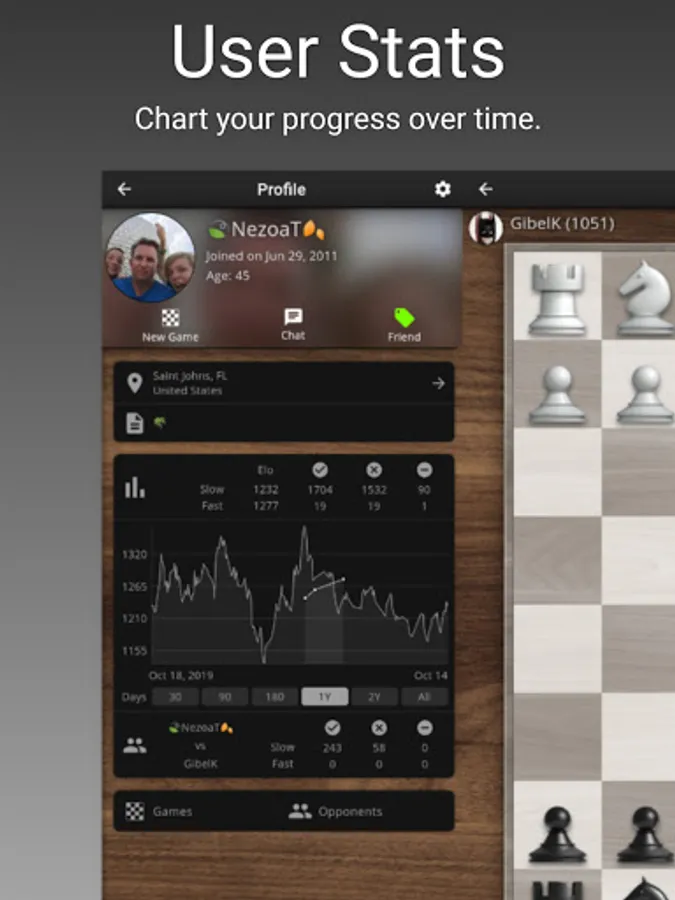 * Search for opponents by username, email, or we'll match you with a random opponent.
