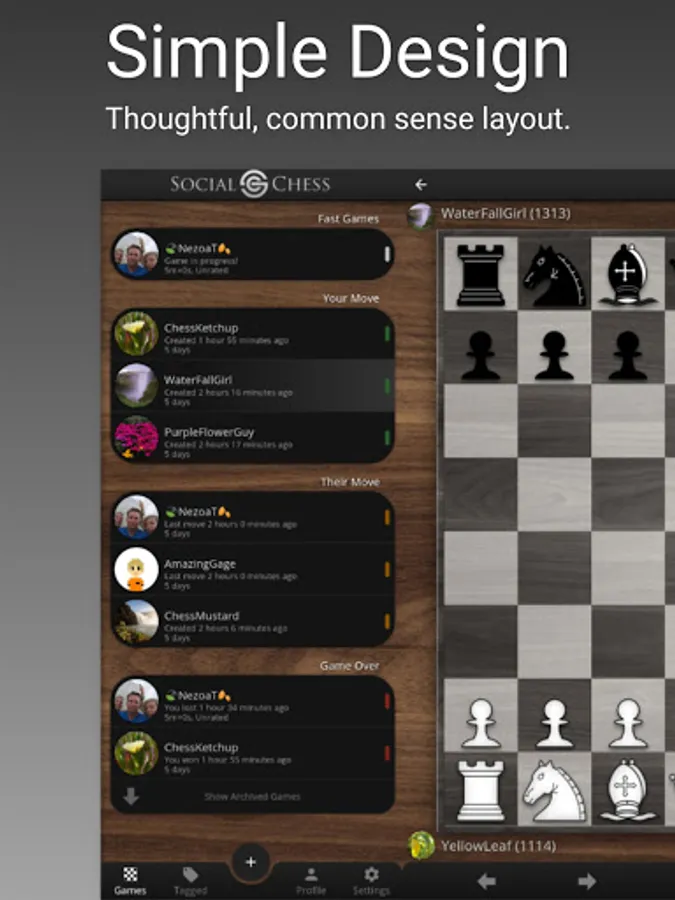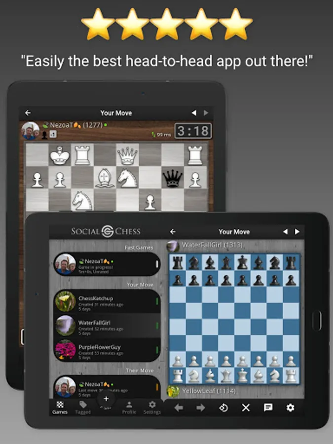 * Play up to 5 chess games at a time, or increase it to 100 with In-App purchase.