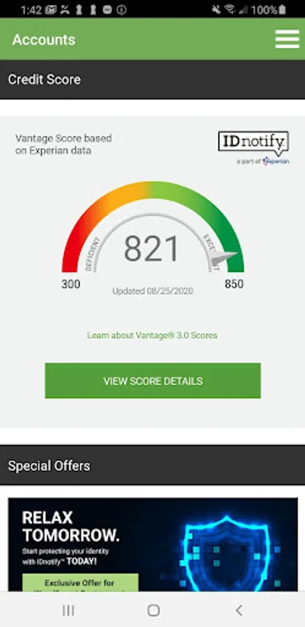 • VANTAGESCORE® - Obtain your free VantageScore (credit score) right in the app. View your current score, progression over time, and learn what positive and negative factors are making an impact.