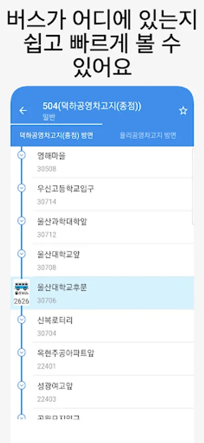 You can conveniently search Ulsan bus stop information and route information.