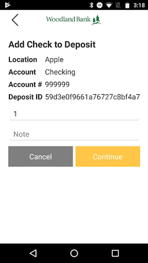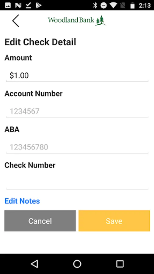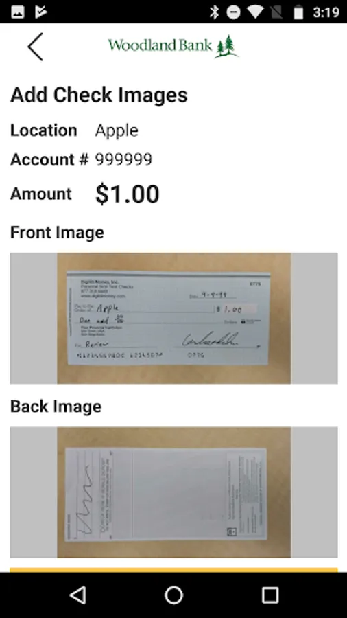 Save a trip to the bank! With Woodland Bank's Business Mobile Deposit Woodland Bank's Business Customers are able to make check deposits remotely anytime, anywhere - they simply use their Smartphones to take pictures of their checks and securely upload the information to Woodland Bank.