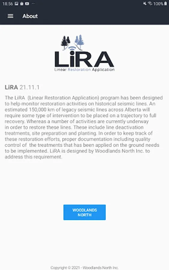 The LiRA (Linear Restoration Application) program has been designed to help monitor restoration activities on historical seismic lines. An estimated 150,000 km of legacy seismic lines across Alberta will require some type of intervention to be placed on a trajectory to full recovery. Whereas a number of activities are currently underway in order to restore these lines. These include line deactivation treatments, site preparation and planting. In order to keep track of these restoration efforts, proper documentation including quality control of the treatments that has been applied on the ground needs to be implemented. LiRA is designed by Woodlands North Inc. to address this requirement.