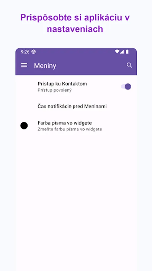 * Settings: Customize the app according to your needs in our settings section. For example, you can set a custom widget text color, allow access to contacts, and much more.