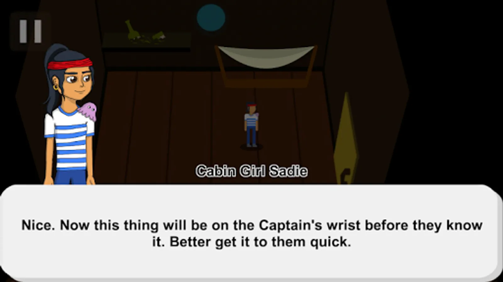 Pirate Squabbles is a point-and-click adventure following the adventures of Cabin Girl, Sadie. Meet the zany crew of this airship and control Sadie as she struggles to reason with the outrageous pirates vying to become the new captain!