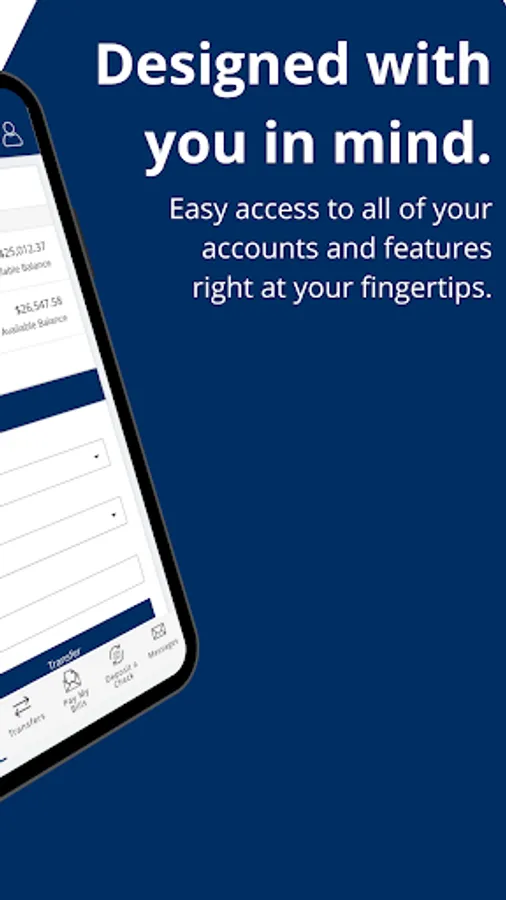 Easily access all of your accounts and features right at your fingertips with our mobile app. Manage your accounts, deposit checks, make transfers, pay bills and more!