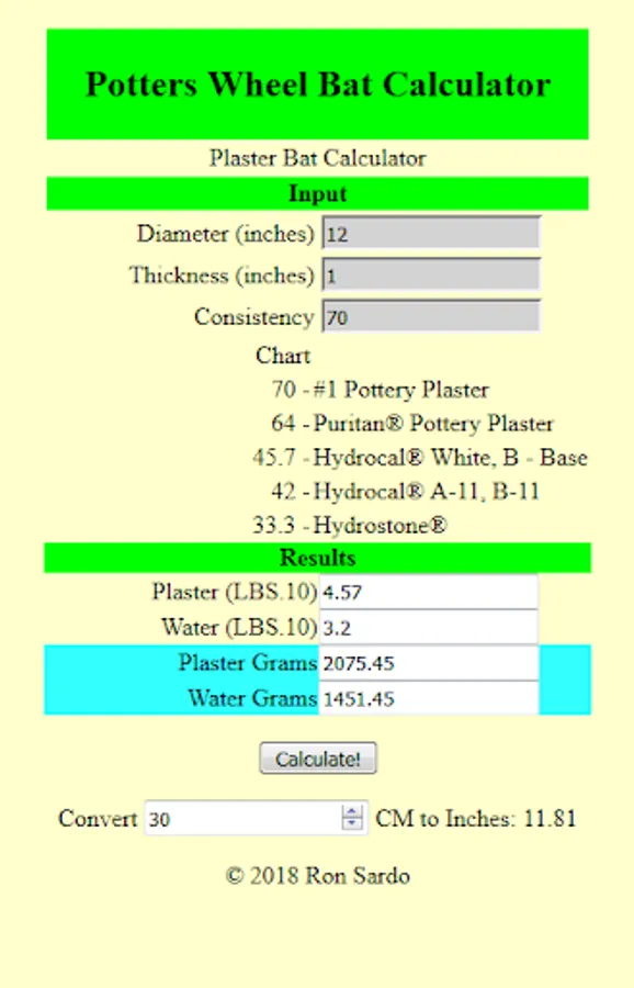 Potters Wheel Bat Calculator