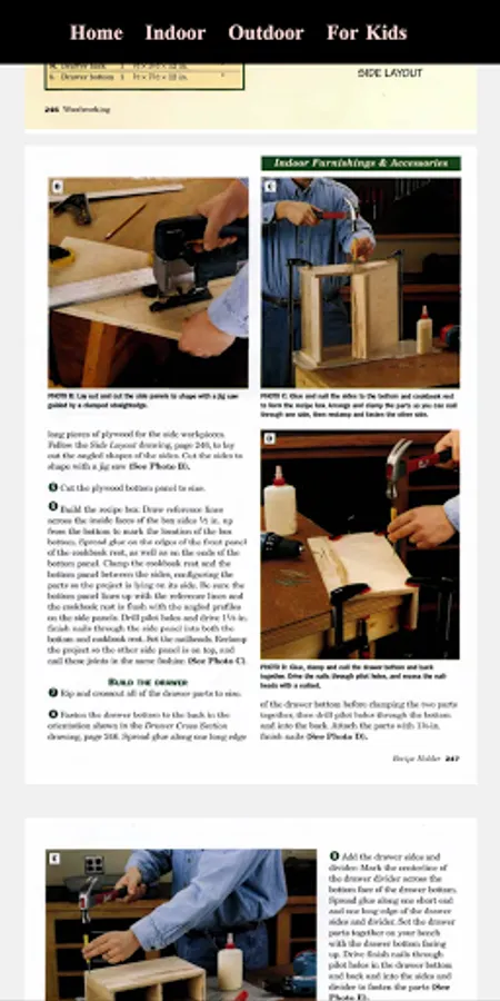 In this app you will find woodworking projects for beginners that are simple and effective in learning the basic of woodworking. All these projects have a detailed instruction on how to do it and what equipment you need.