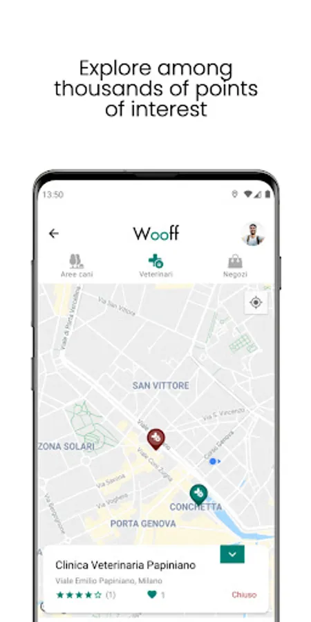 Wooff is fundamentally based on its community. In fact, users are invited to suggests new places of interest or propose changes to existing ones. In this way, even a small green area can become a meeting place for you and your four-legged friends!