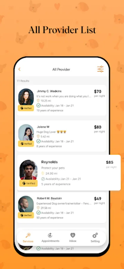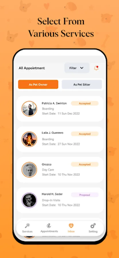 In-app messaging enables easy communication with your pet sitters. Receive messages from sitters when you're on the go.