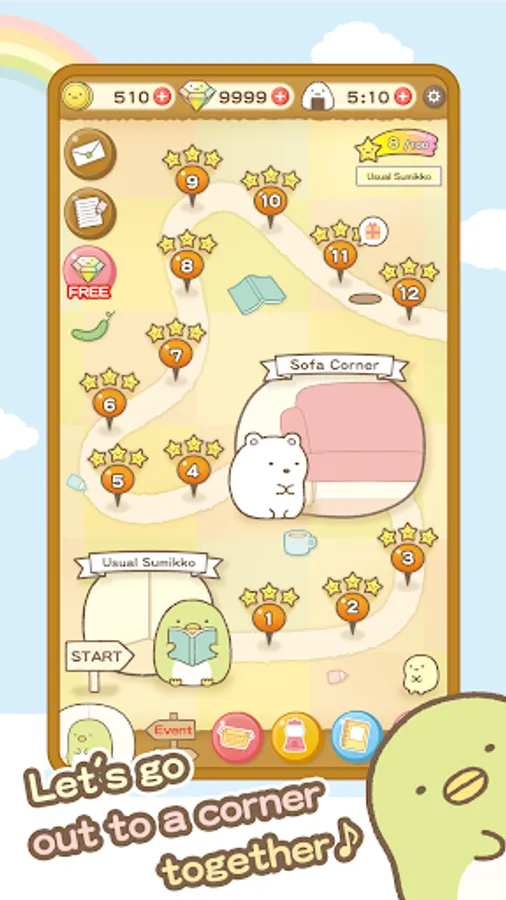 Enjoy a real slice of cuddly fun with the cutest characters ever to set foot on your mobile. With puzzles, prizes, and presents galore, Sumikko gurashi-Puzzling Ways has got it all wrapped up in a beautiful furoshiki.