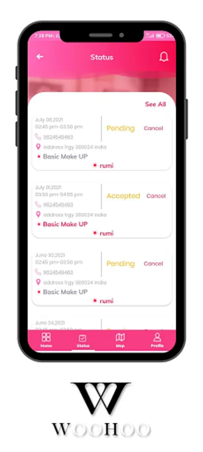 Woohoo is an app designed for the customer who looks for the salons for their hair styles and another services. Here Customers can book their appointments from the selected service providers.