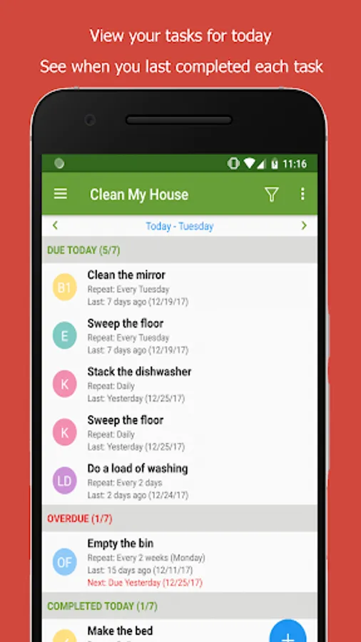 Whether you live alone or with a family, managing a house can be challenging. Many times we are not sure what to do when we wake up each morning and may miss our daily tasks completely. If you've ever thought, I need an app that can help me plan my house cleaning schedules and remind me every day of the daily tasks and things to do, this app is for you. Rather than using a generic daily planner or organizer, it’s a much easier way to create a schedule that focuses on housekeeping chores and errands.