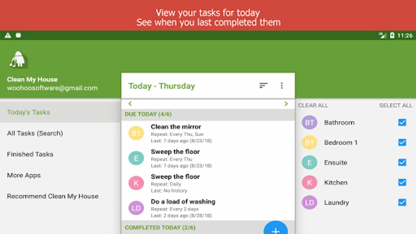 Manage your house cleaning schedule with our schedule maker! Clean My House is the number 1 app to organize and schedule errands and all housekeeping related daily tasks. No more worrying of what to do every morning. You will get a reminder of things to do for that day. This app will make your life so much easier and your house so much cleaner!