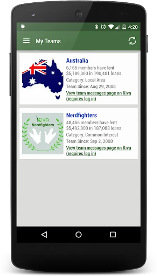 My Teams - view your Kiva teams - direct link to the teams messages board.