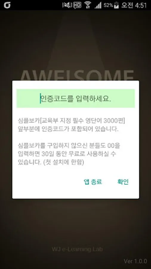 ★ Simple Voca [3000 essential English words designated by the Ministry of Education] is an app for readers. The verification code is on the front of the book. (However, if you enter 00 as the verification code, anyone can use it for free for 30 days.)
