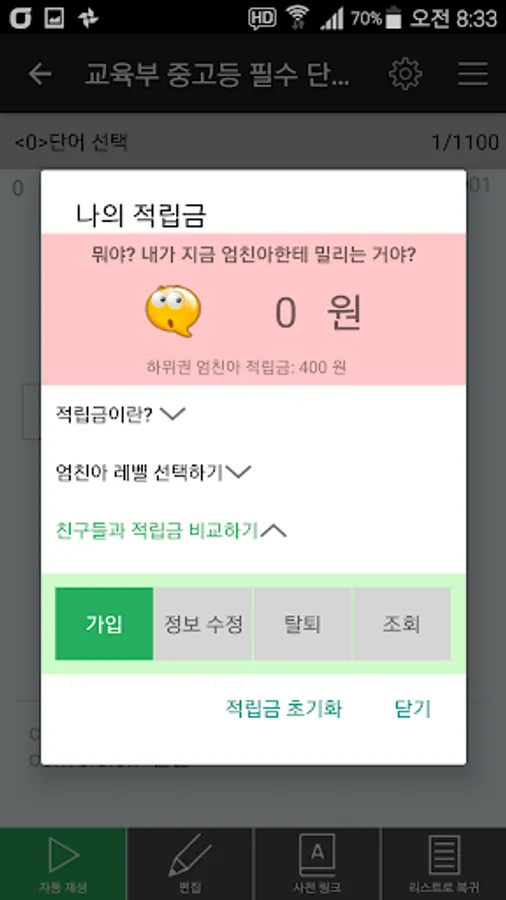 - As you proceed with learning, reserve money (a kind of point) is accumulated, and you can compare this figure with your group friends in real time; Depending on the result, it is possible to bet tteokbokki, etc. ^^