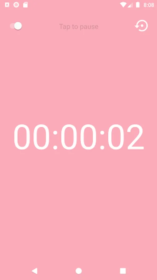 By the tap the screen, the stopwatch will start, pause, and resume with a nice background color.
