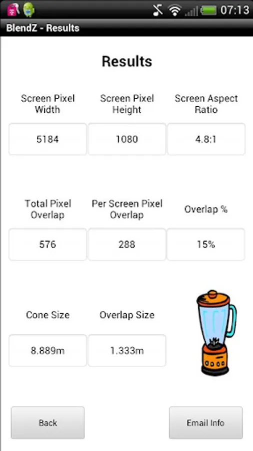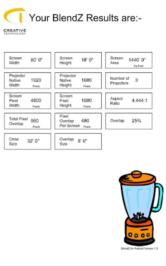To begin all you need to know is the desired width and height of the projection surface, the native chip resolution of the projectors (or output resolution of the source device) you are planning to use, and the number of projectors you think you need. Then, BlendZ will give you all the information you need. BlendZ works in both Feet and Metres, just choose your preferred flavour of measurement, in 'Preferences', and off you go.