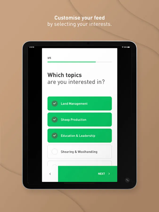The AWI Woolgrower App has been developed by Australian Wool Innovation (AWI) to enable Australian woolgrowers and wool industry stakeholders to access news and resources from AWI in a convenient manner. The App allows you to select the topics that you are interested in and provides a personalised feed of news and resources on those topics. The purpose of the App is to keep you up-to-date on AWI activities and provide you with the information and tools to improve on-farm productivity and profitability. Further information about AWI is available at www.wool.com.