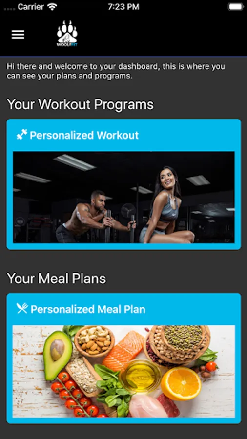 Download the Woolf Fit app. This app will let you see your plan designed to help you achieve your health and fitness goals.