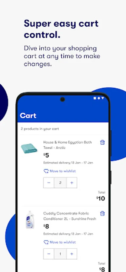 Create up to 5 different wishlists to help you prepare for upcoming events like Christmas, Easter or a wild party for kids. Add and edit items on your wishlists with a simple tap. When you’re ready to buy, add the items to your shopping cart.