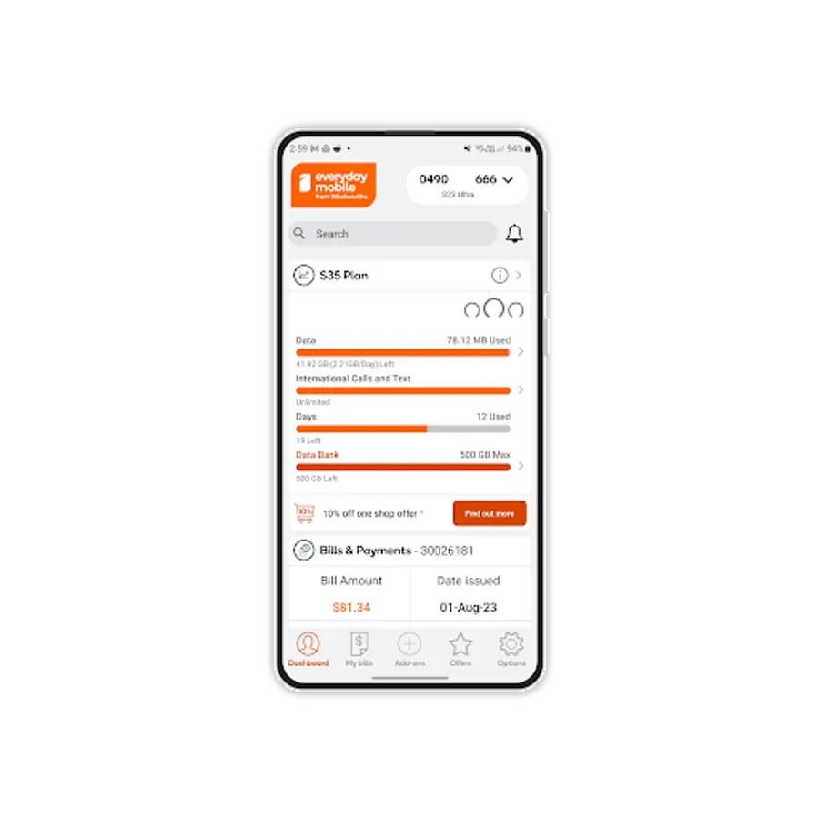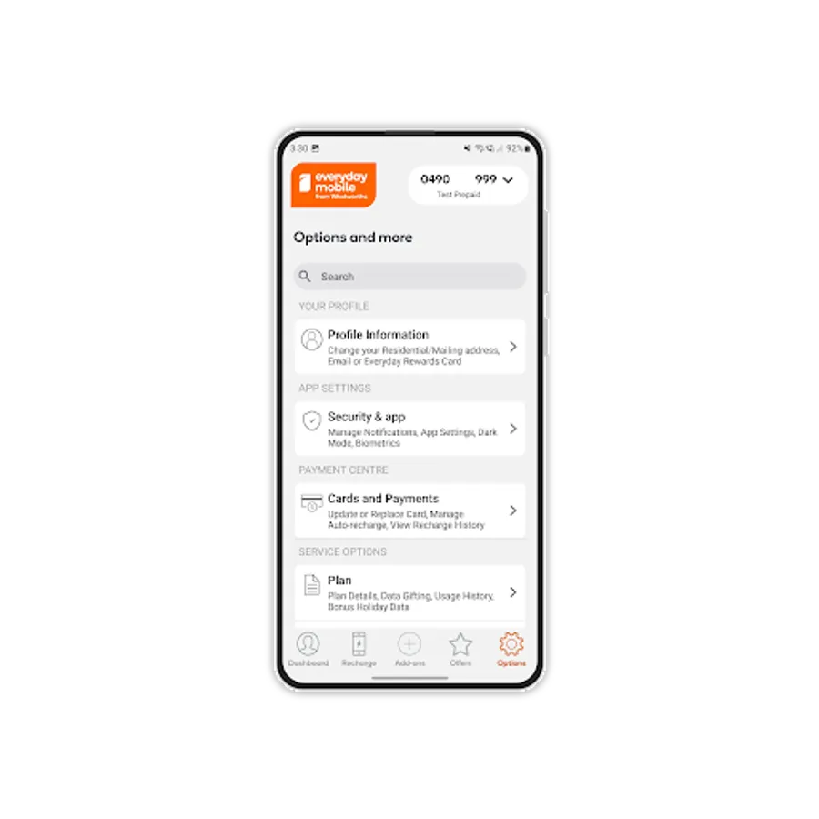 The Everyday Mobile from Woolworths app is the simplest way to manage your Everyday Mobile plan. Check your usage, recharge your Prepaid service, download and view your Bills, buy an Add-on for your service, set up Auto-recharge or chat to us if you have a question – it’s all at your fingertips and in one place!