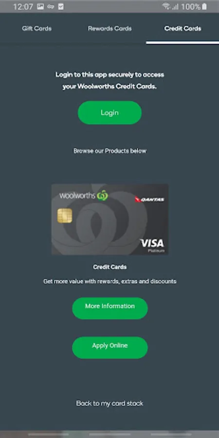 • A quick view of your Woolworths Credit Card, gift cards and Woolworths Rewards card balances without logging in