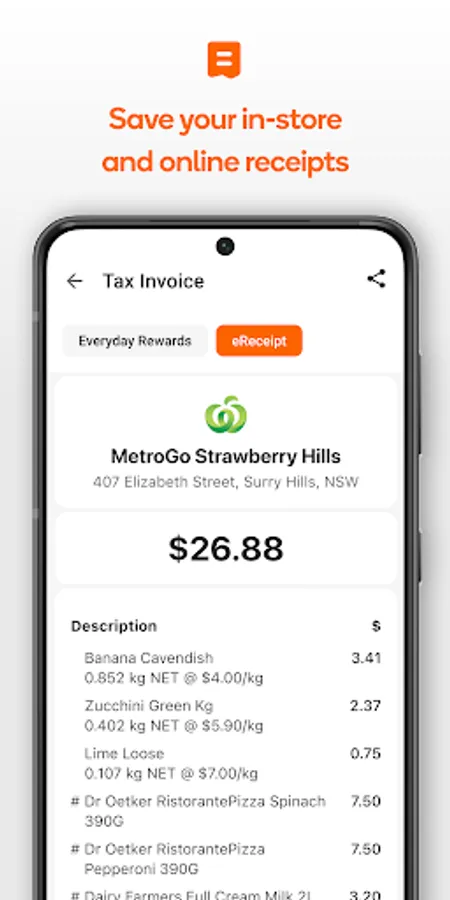 Change how you checkout with Woolworths eReceipts. Convenient and contactless, they allow you to view your transactions in the app for up to 90 days after you shop. Easy.