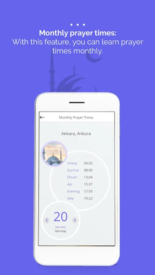 Monthly prayer times: With this feature, you can learn prayer times monthly.