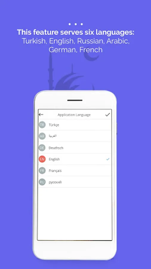 This feature serves six languages: Turkish, English, Russian, Arabic, German, French