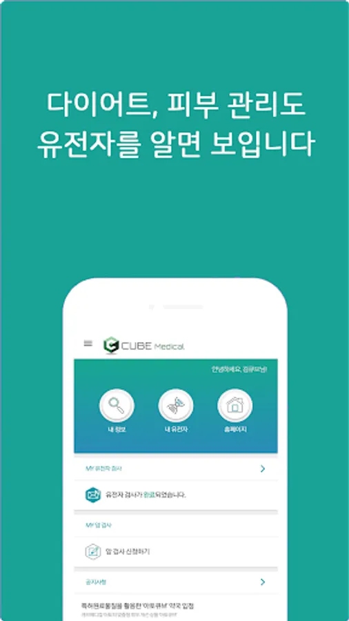 The Cube Medical app provides your genetic test results and various health information in real time.